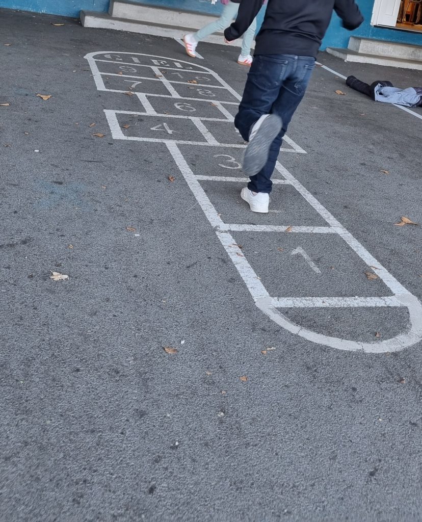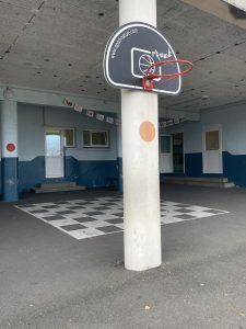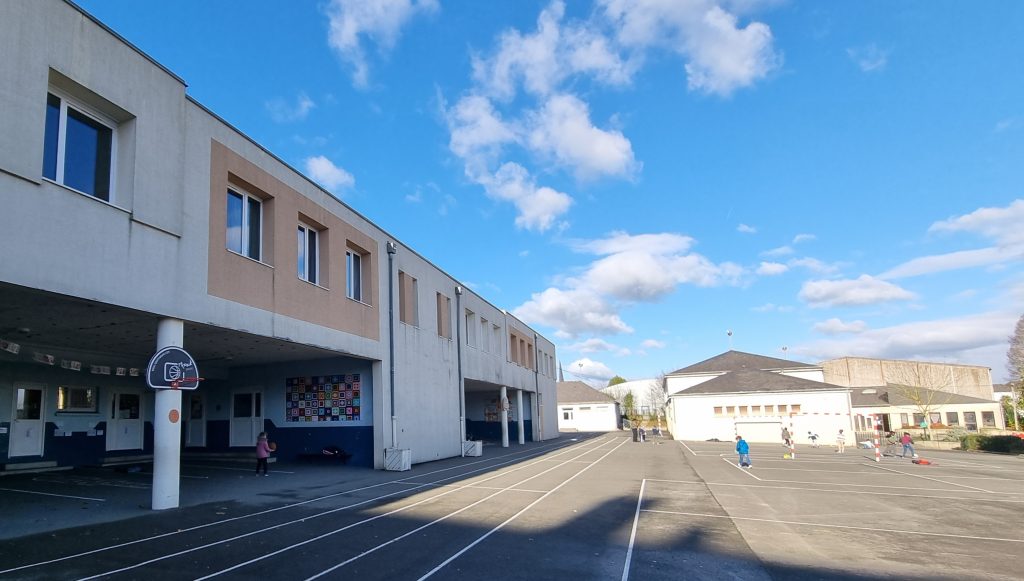 L’école bénéficie d’une grande cour pour l’élémentaire avec buts, couloirs de course, paniers de basket, son propre gymnase.